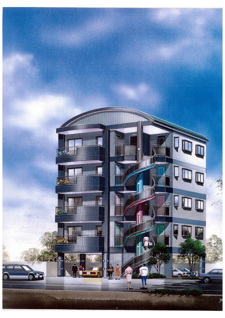 少年時代、父が建てる家づくりを体験した彼は、建築士の道に歩み始めています。