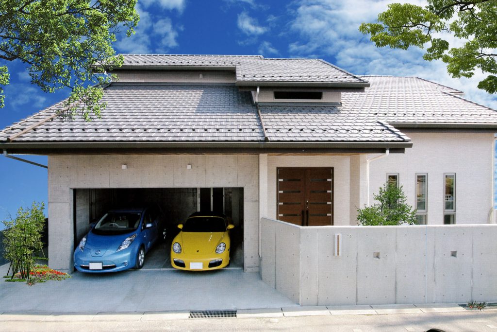 意匠+構造(木造+RC=混構造)で、ビルトインガレージのある家。新築+増改築:混構造・難解な構造計算ですが、施主さんの夢が叶いました。